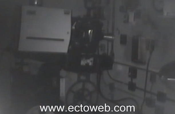 This video was captured by one of our unmanned infrared cameras during the investigation of this historic theatre. Watch the small opening in front of the projector. An apparition passes back and forth in front of the lens.